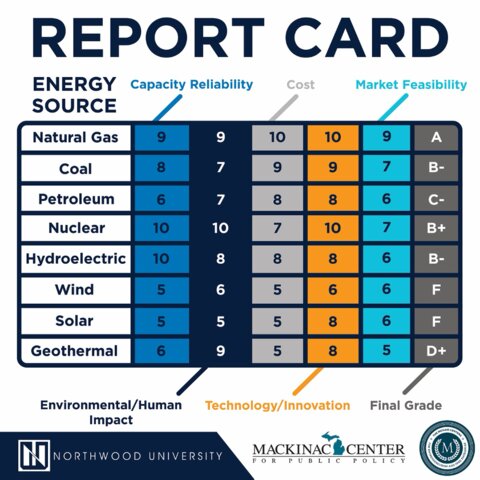 MIDLAND, Mich. — Natural gas and nuclear power lead the rest of the class in generating clean and affordable energy, according to a new national energy report card created by Northwood University in partnership with the Mackinac Center for Public Policy.