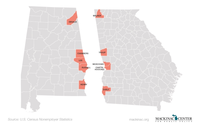 Graphic 6: Alabama and Georgia Bordering Counties Used in Analysis