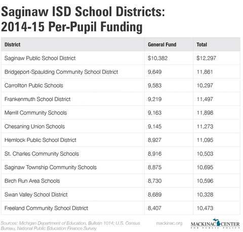 Yet no district in the ISD receives more general fund dollars per student than Saginaw or Bridgeport-Spaulding. If you count all revenues, the districts rank first and third, respectively, within the ISD.