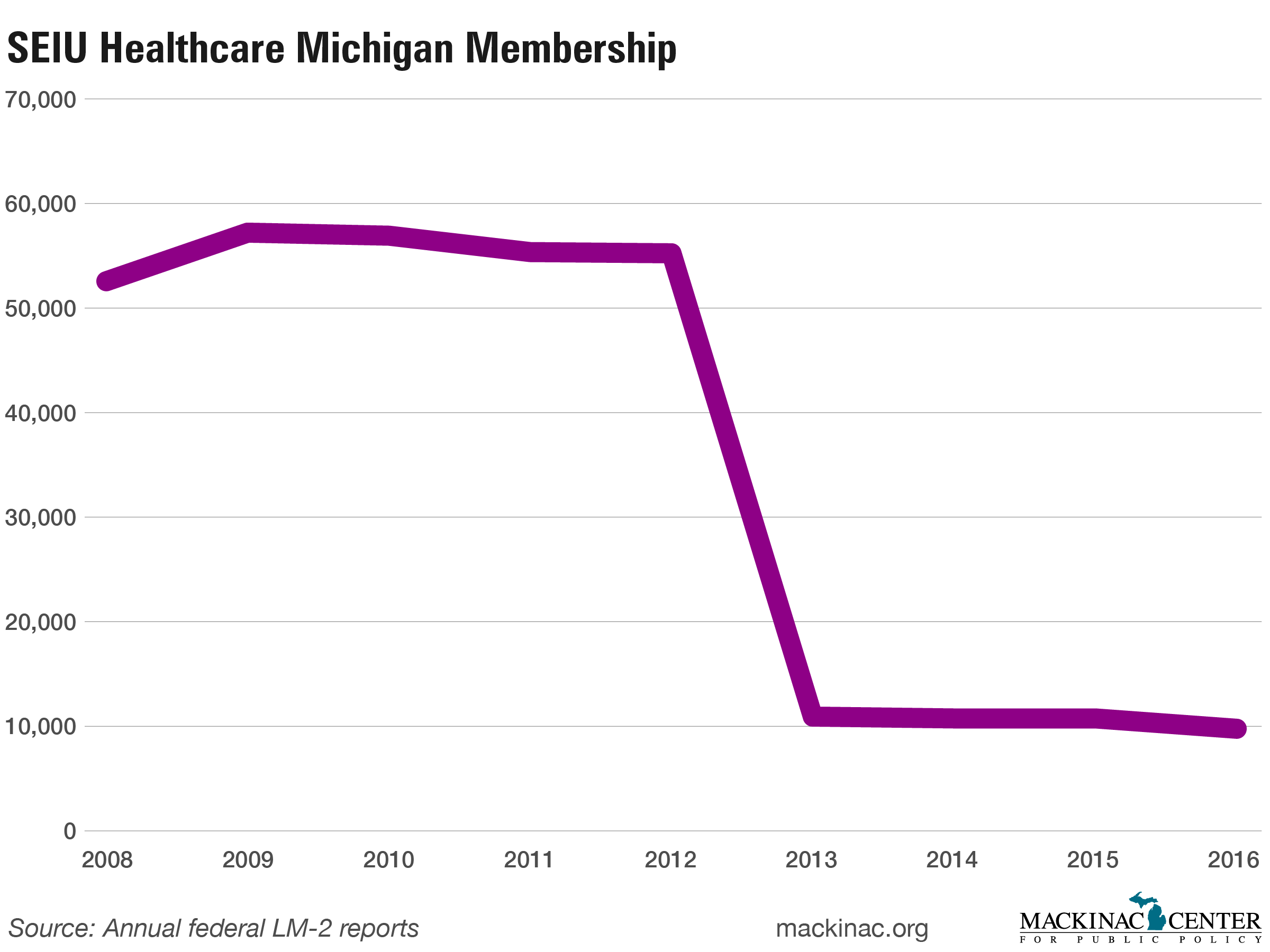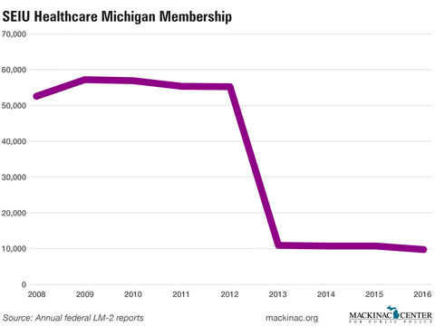What led to such a swift downfall? Well, when health care workers were provided a choice about supporting the SEIU, they responded by opting out of the union in spades. The Michigan Legislature empowered this choice by ending the “dues skim” and then passing right-to-work.