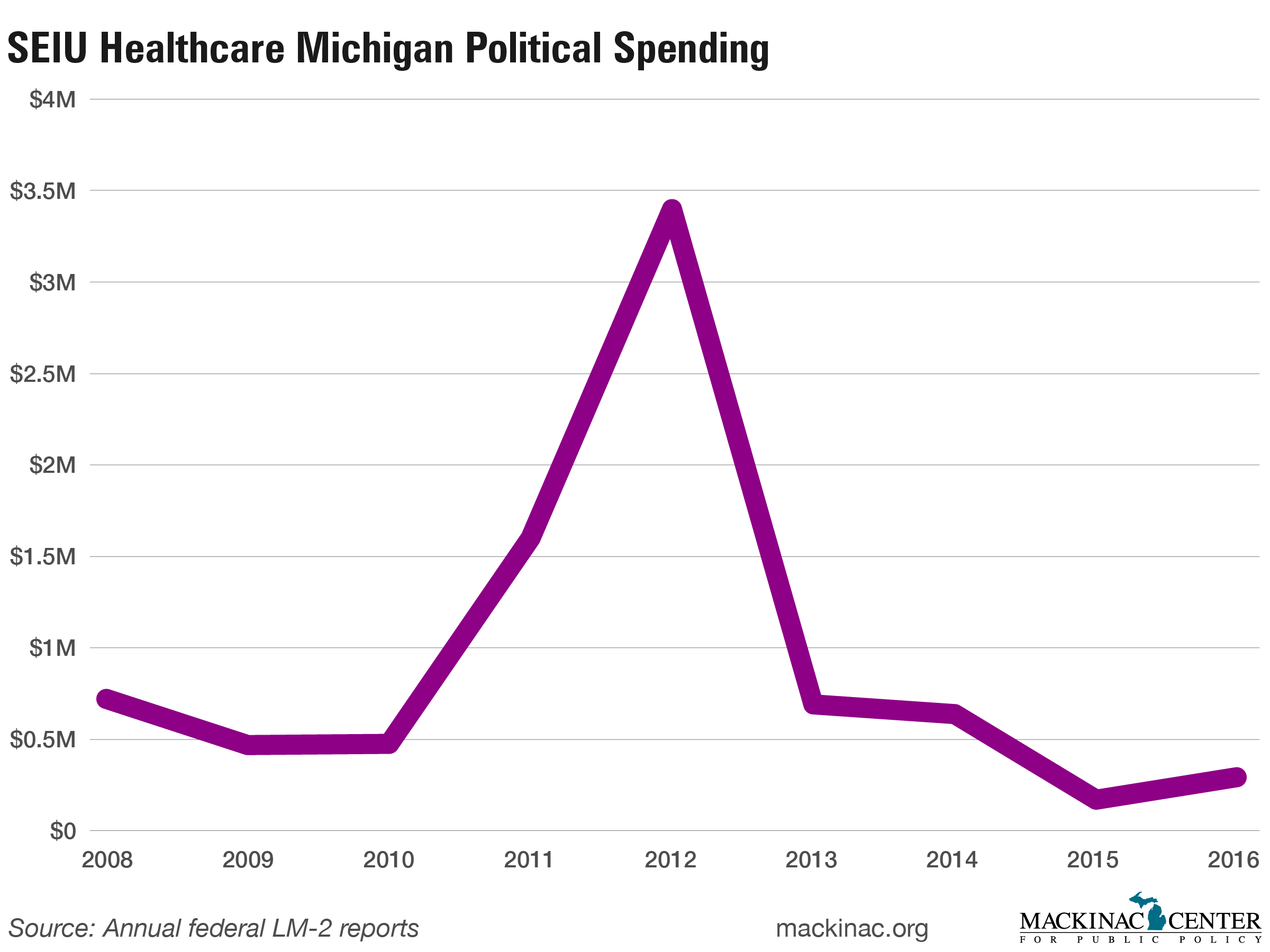 In 2012, the Michigan branch of the Service Employees International Union representing home health care workers was riding high. It had 55,000 members, brought in $22 million annually and was able to spend nearly $3.5 million on politics.
