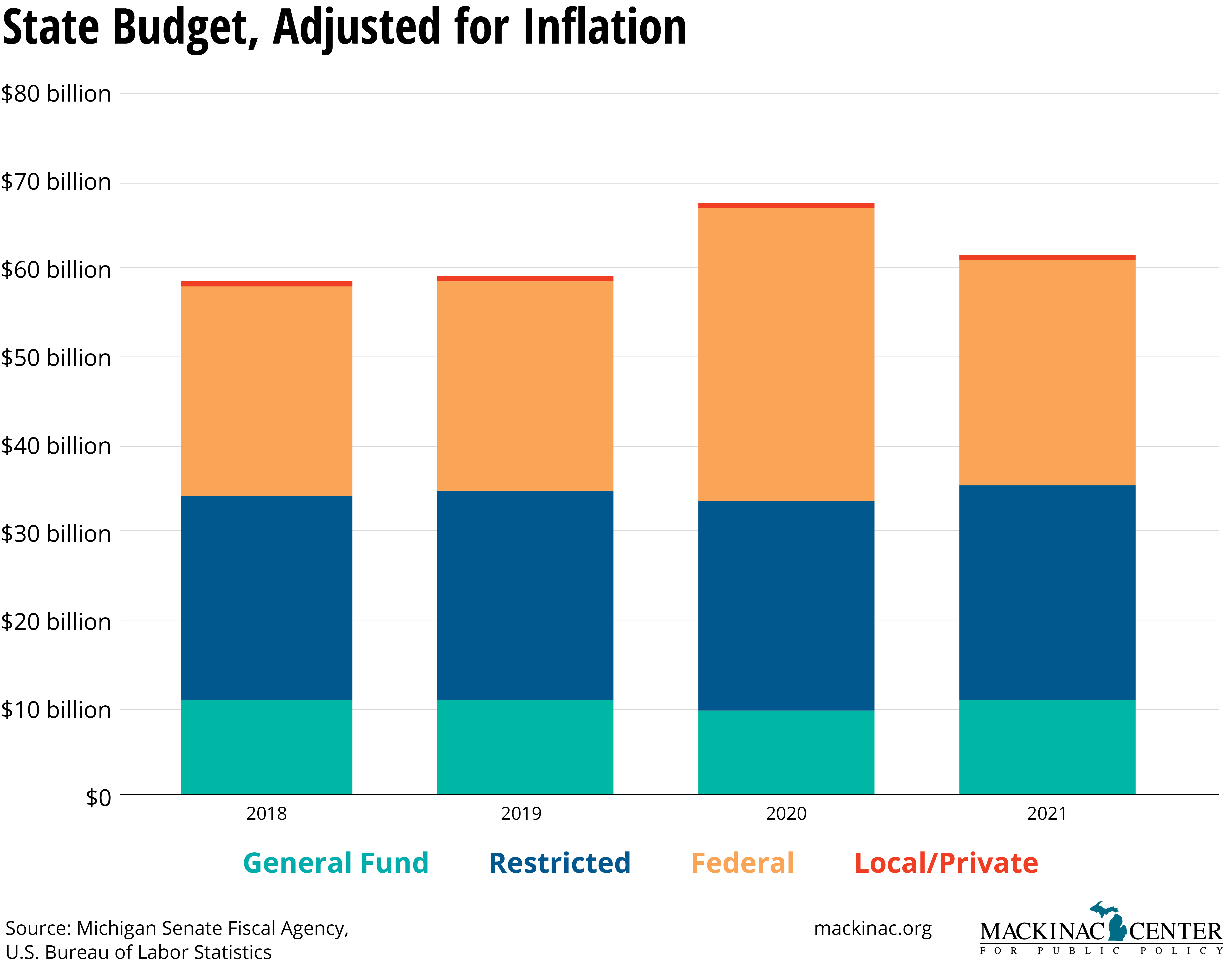 Gov. Gretchen Whitmer has asked the federal government to give states more money as part of an additional pandemic relief spending deal. Yet the state budget has increased — both despite the pandemic and because of it. Spending is up despite the pandemic because revenue has recovered. And it’s up because of the pandemic, since federal relief efforts have put much more into the state budget than the state lost in tax revenue.