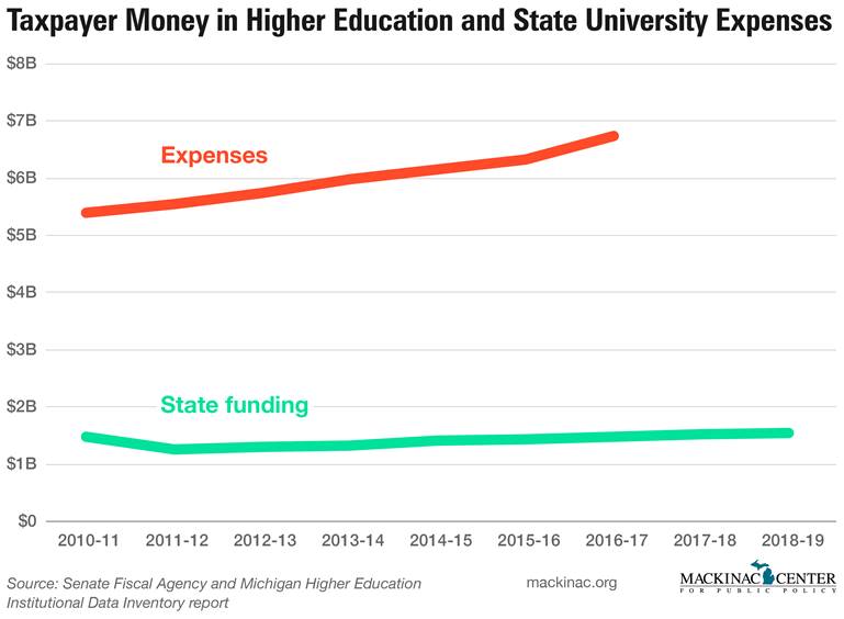 Even if there were more students attending Michigan public universities, the extra state aid would not improve outcomes. More taxpayer money devoted to higher education doesn’t generate a better educated state population. It has even less to do with overall state prosperity. At best, the additional money reduces the rate of increase in tuition and fees that state residents would pay to attend state universities.