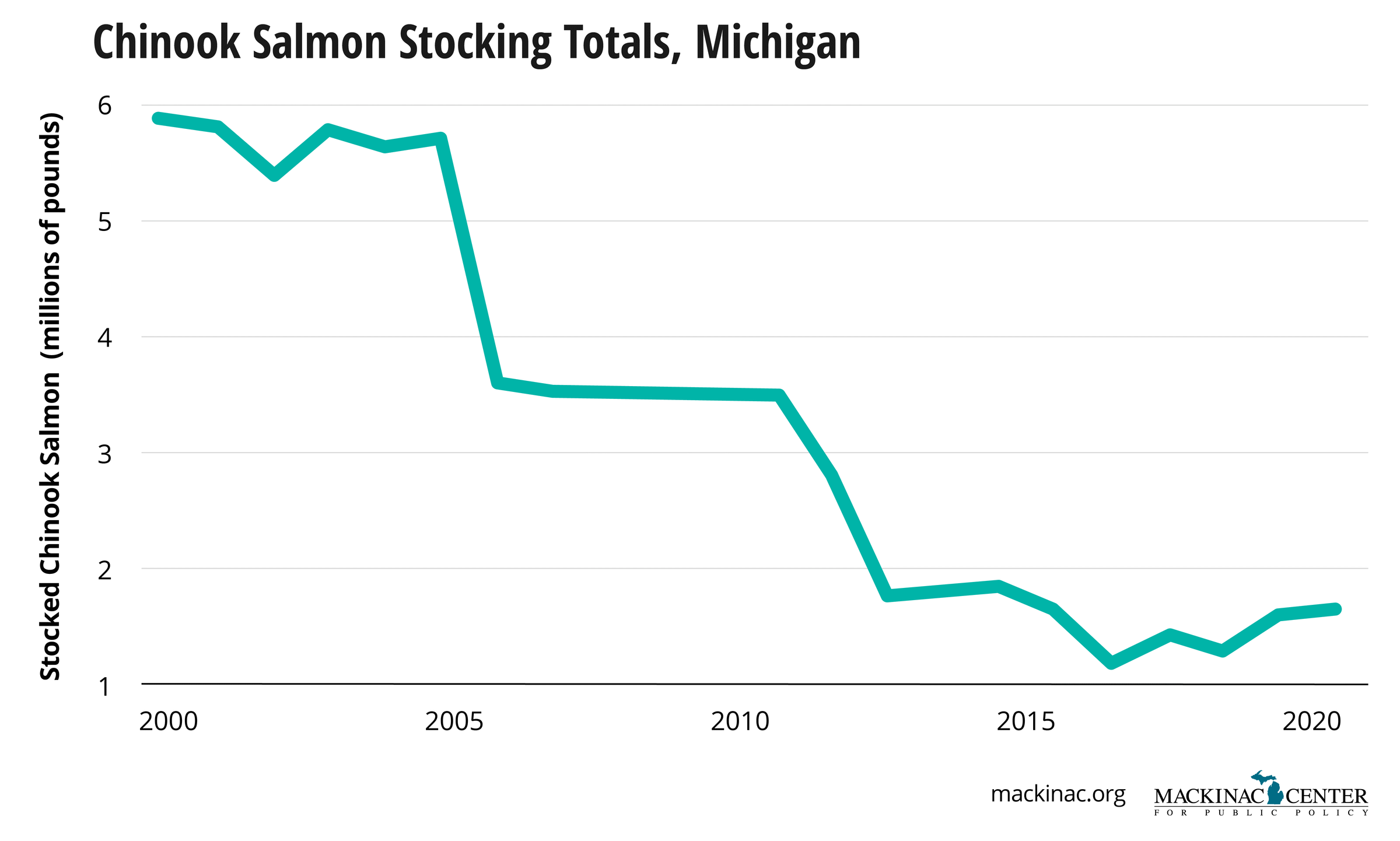 In response to this decline, and other factors, the DNR has drastically cut back on stocking chinook, which have been described as the cornerstone of the state’s salmon stocking efforts, as well as other varieties of salmon.