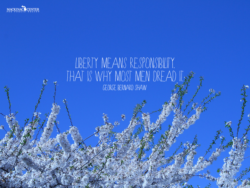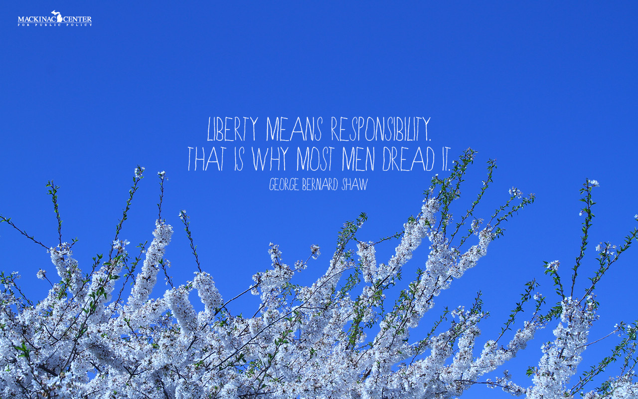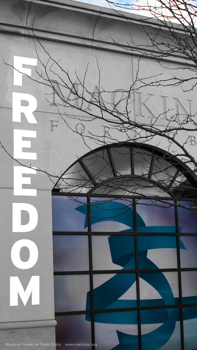 The Mackinac Center for Public Policy supports making liberty a part of our daily lives, and in that vein we have designed a number of new background images for your computer, iPad, iPhone or Pinterest page to advertise YOUR love of freedom. Download one (or several) images completely free-of-charge from our growing collection of Mackinac Center graphics.