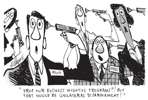 Most of the evidence — theoretical, empirical and anecdotal — do a little more than suggest that these programs don’t work. Politicians and other apologists for state and local incentive programs may squeal that “we can’t unilaterally disarm,” but in fact the programs were never armament in the first place. Ultimately, these programs are just expensive ribbon cutting ceremonies — or public relations cover — for politicians, funded by their constituents.